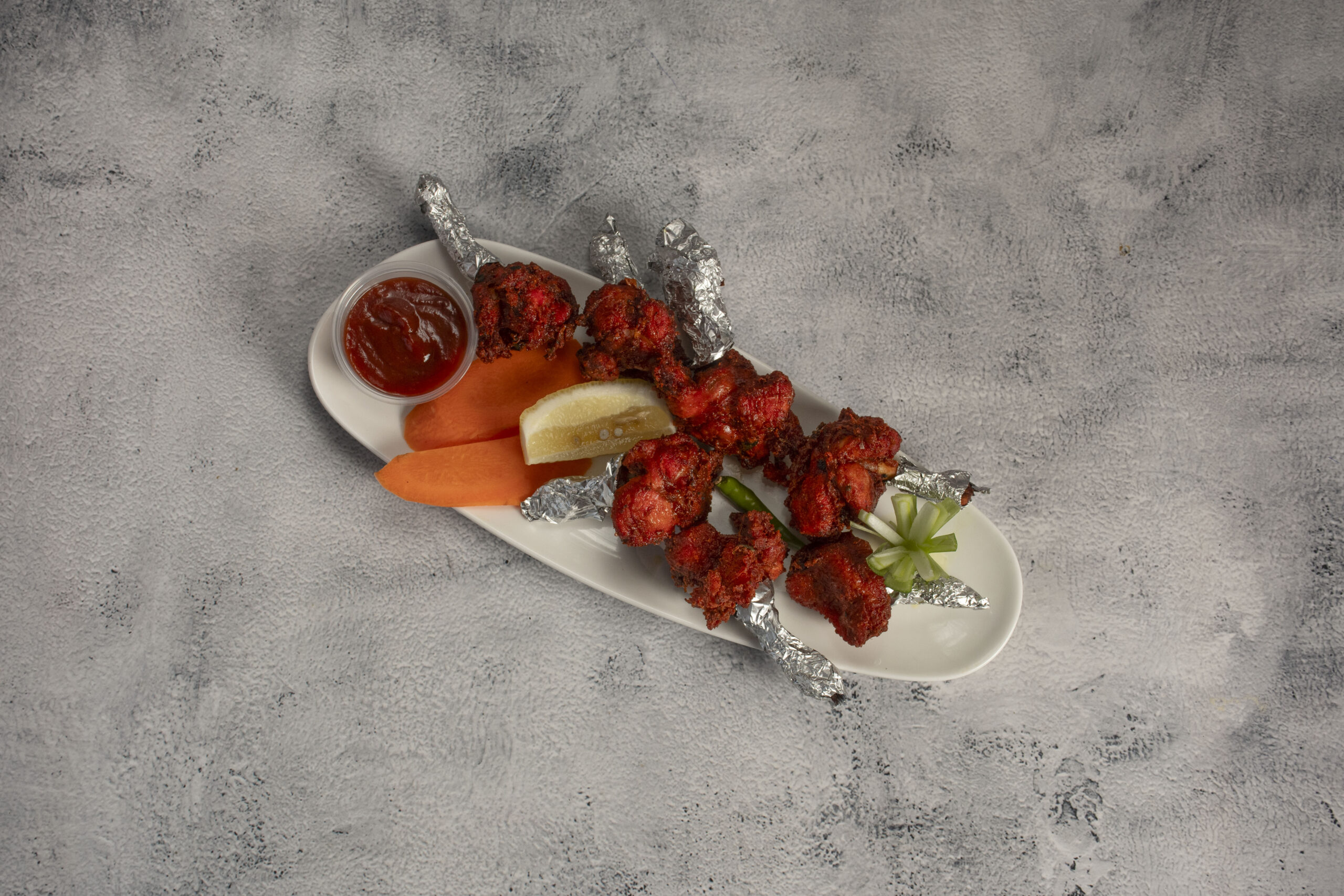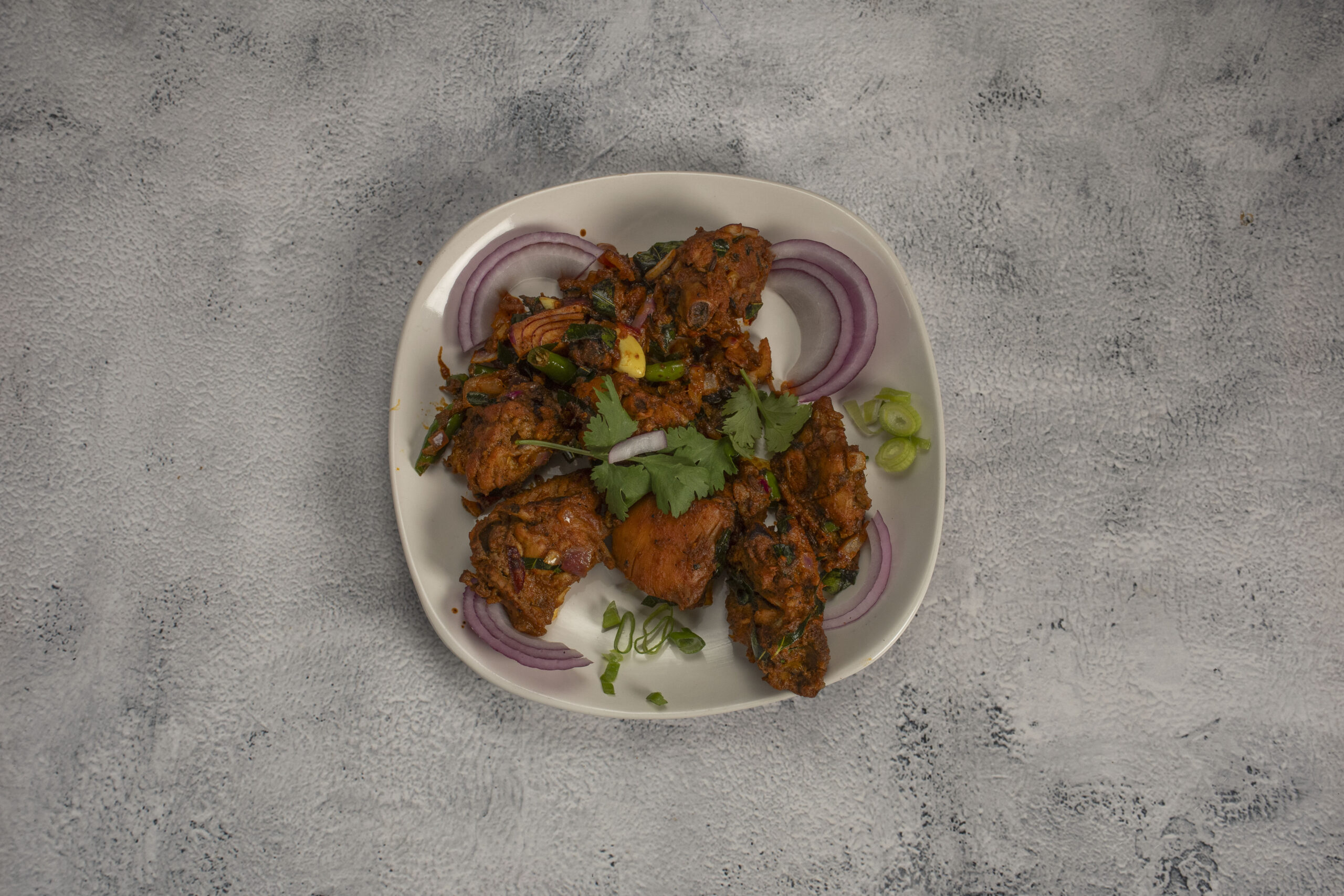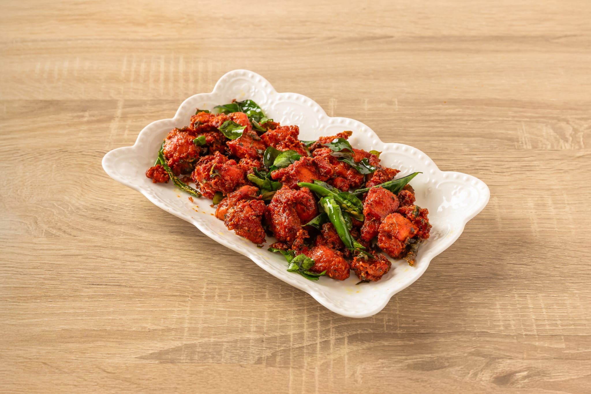 Tender deep fried chicken tossed in yummy sauces with curry leaves and spices.