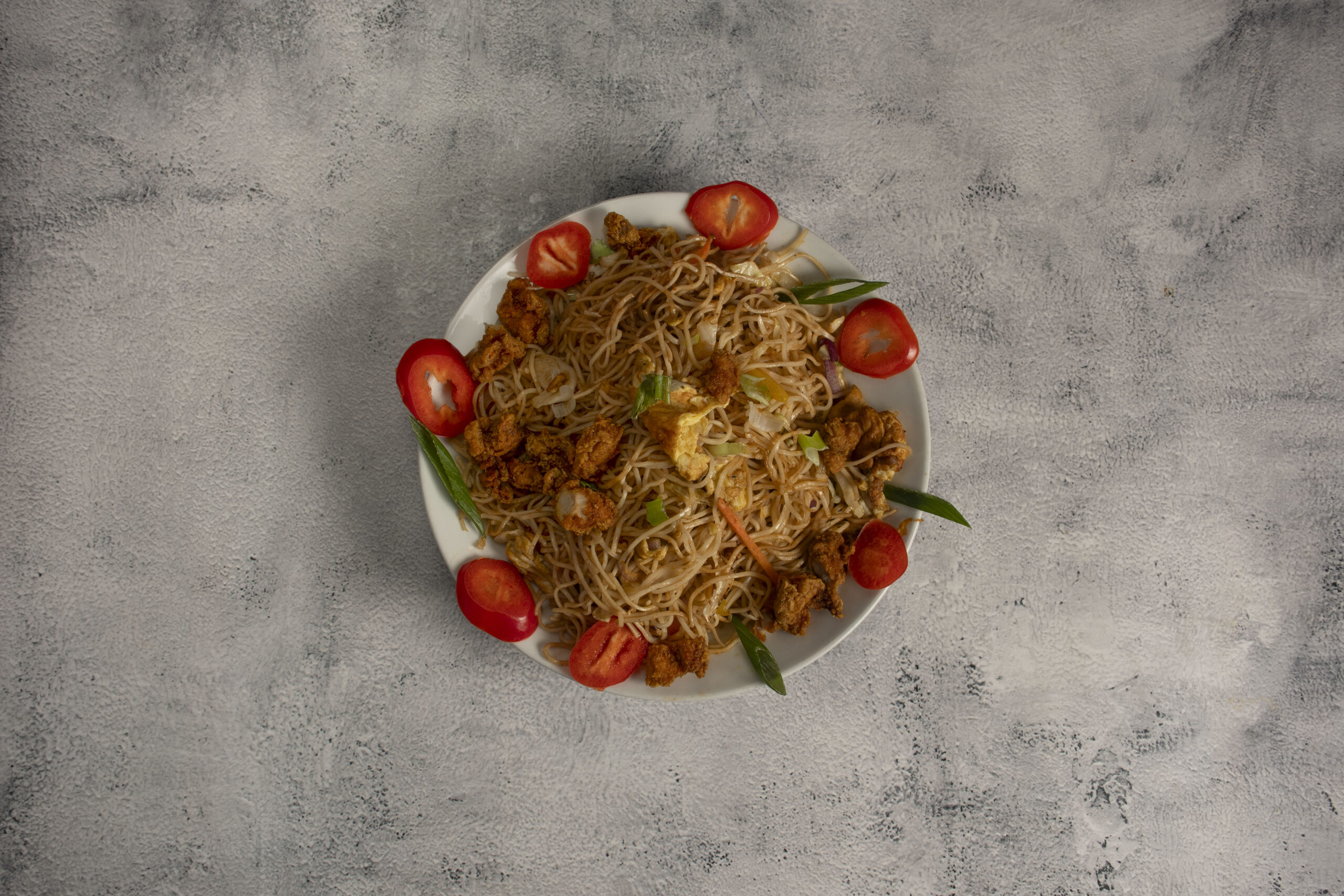 Irresistible blend of wok-tossed noodles, succulent chicken pieces, and crisp vegetables.