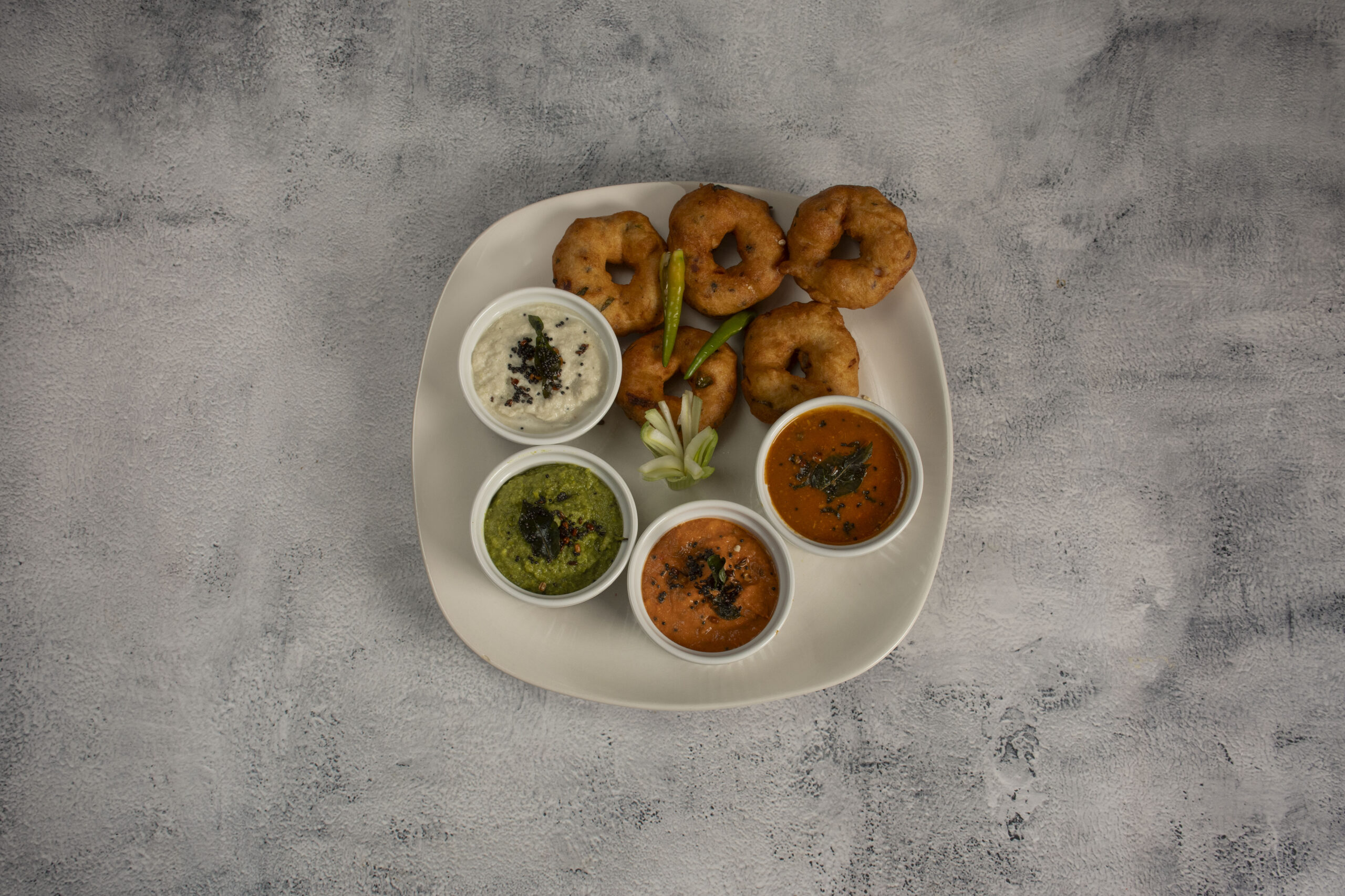 Medhu Vada (5 pieces with sambar and chutney)