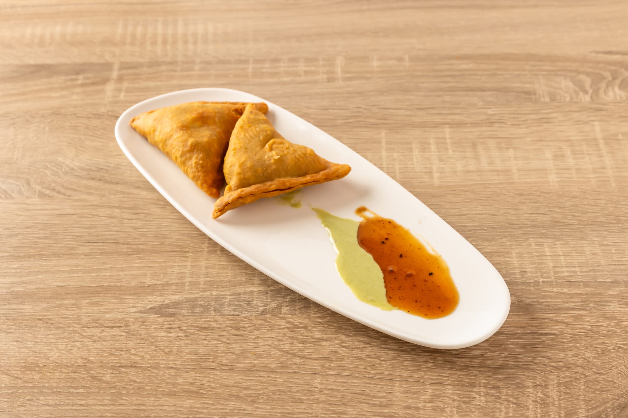 2 Veg samosa with mint & sweet chutney
